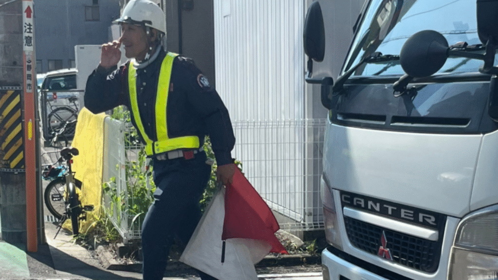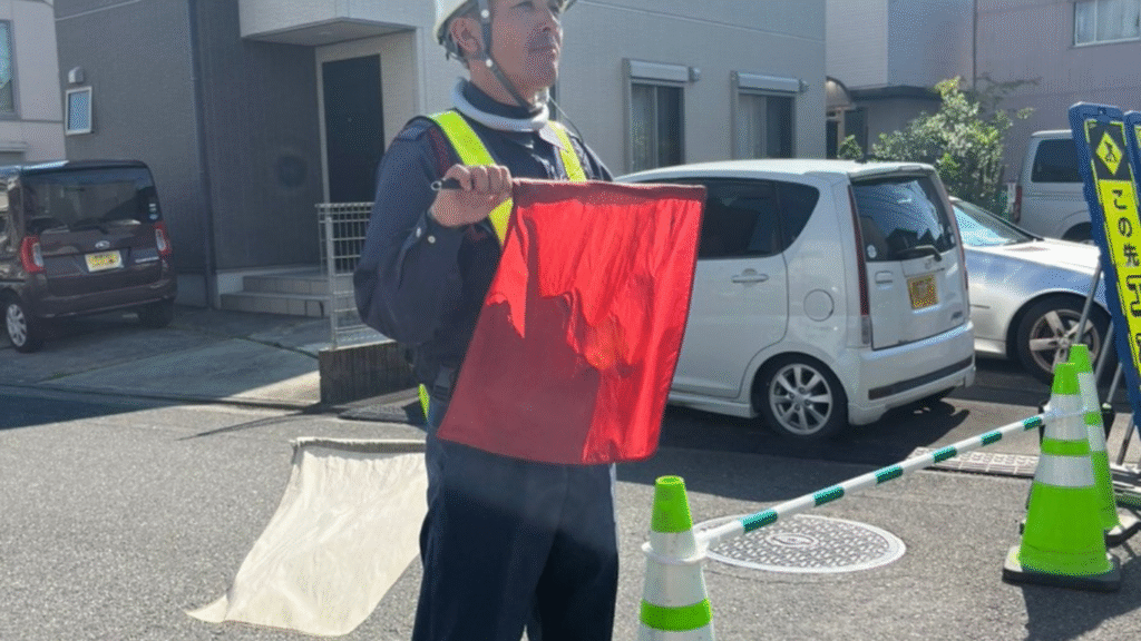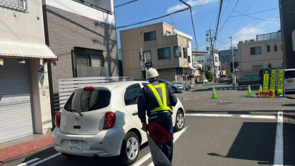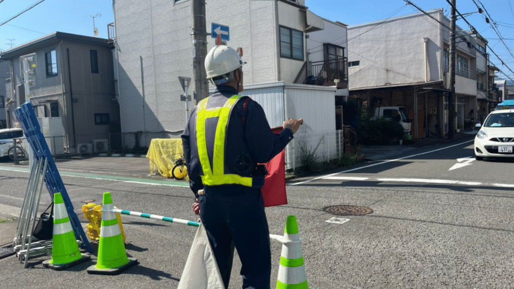 道路工事や建築現場などでの交通誘導を行い、通行人や車両の安全を確保します。